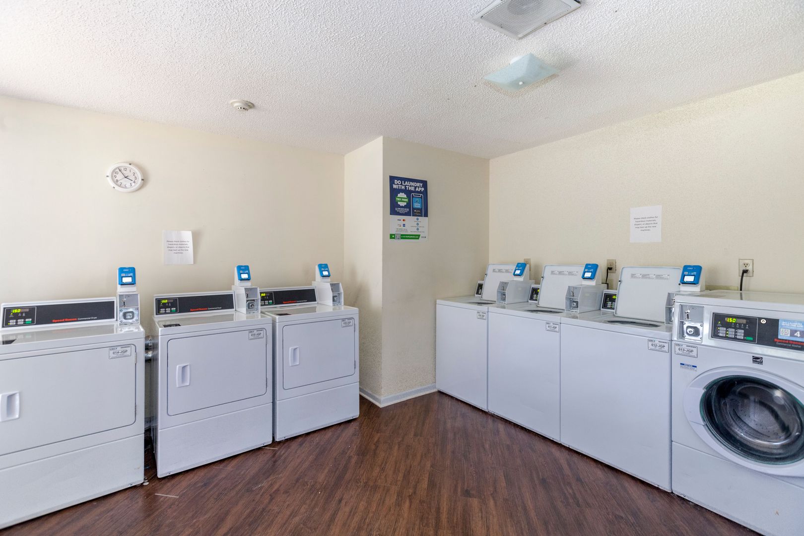 There is a well maintained coin operated laundry room that accepts both coins and debit/credit cards. The laundry room is right off the communal TV room so you may sit and watch TV while waiting for your laundry or bring a book and enjoy the large screened in porch furnished with rocking chairs.