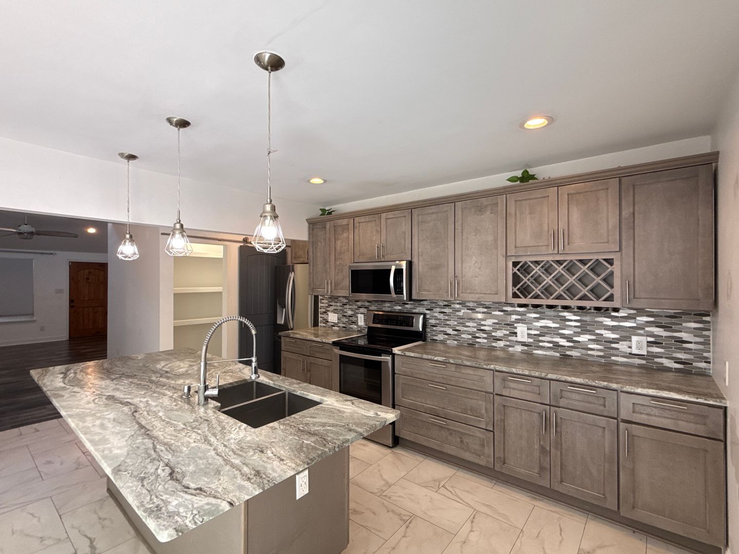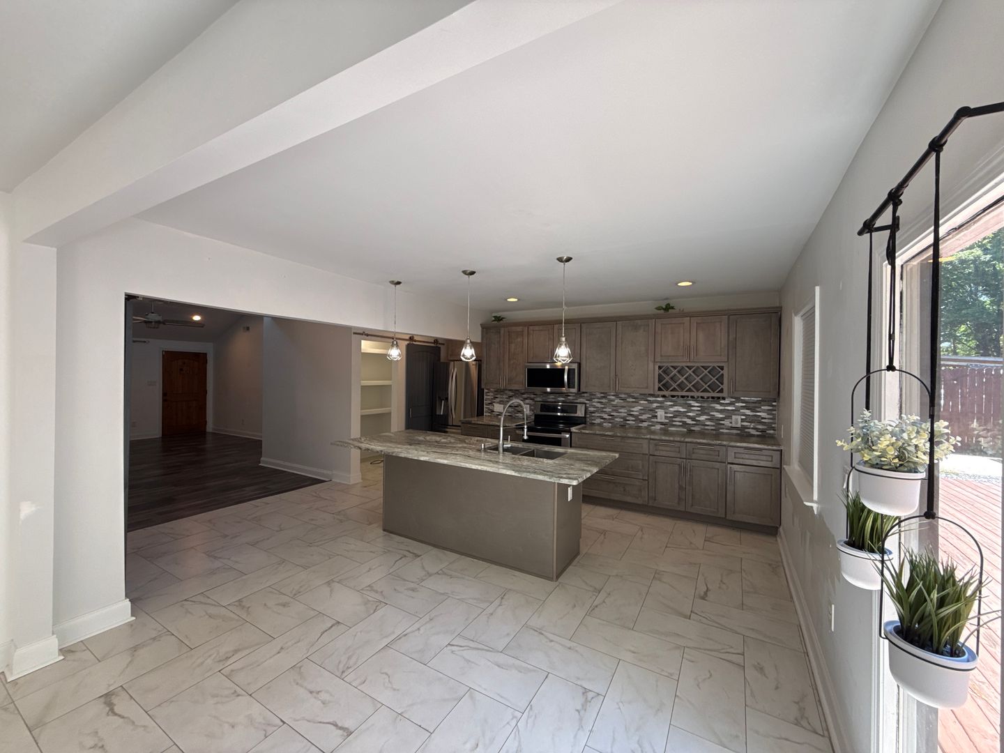 An absolute hidden gem! This incredible, renovated home has a flowing open-floor-concept that allows for seamless entertaining, flexible layout, and abundant natural lighting. The dream kitchen is complete with a large pantry hidden by a barn door, stainless steel appliances, huge granite island for prepping, and beautiful cabinetry. The primary room with ensuite bathroom features a stunning tiled walk-in shower with rainfall showerhead, dual vanity sinks, and generously sized walk-in closet. An additional two bedrooms can be used for whatever your needs are! The back of the home is fenced and is a serene space. An above ground pool is perfect for cooling off in the summer and entertain with the perfect outdoor bar and patio area! ( Tenant will be responsible for the upkeep of pool IF they want to use it.) Tenant can also set up a Nest account and use the doorbell camera for security, thermostat is also controlled with WIFI and the Nest app.