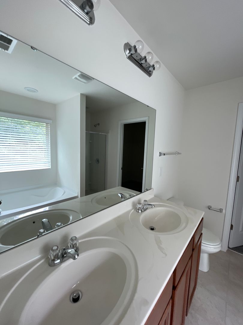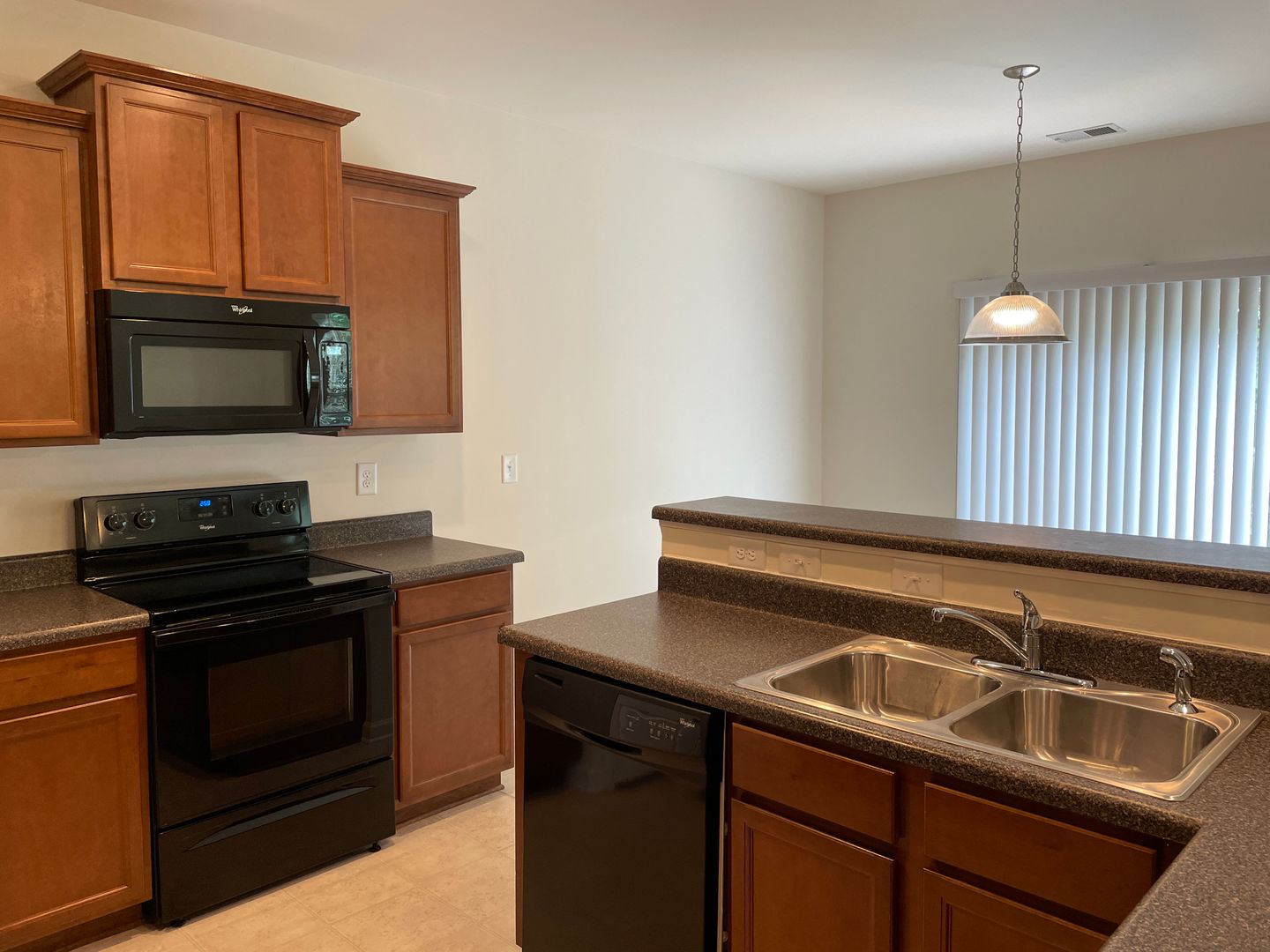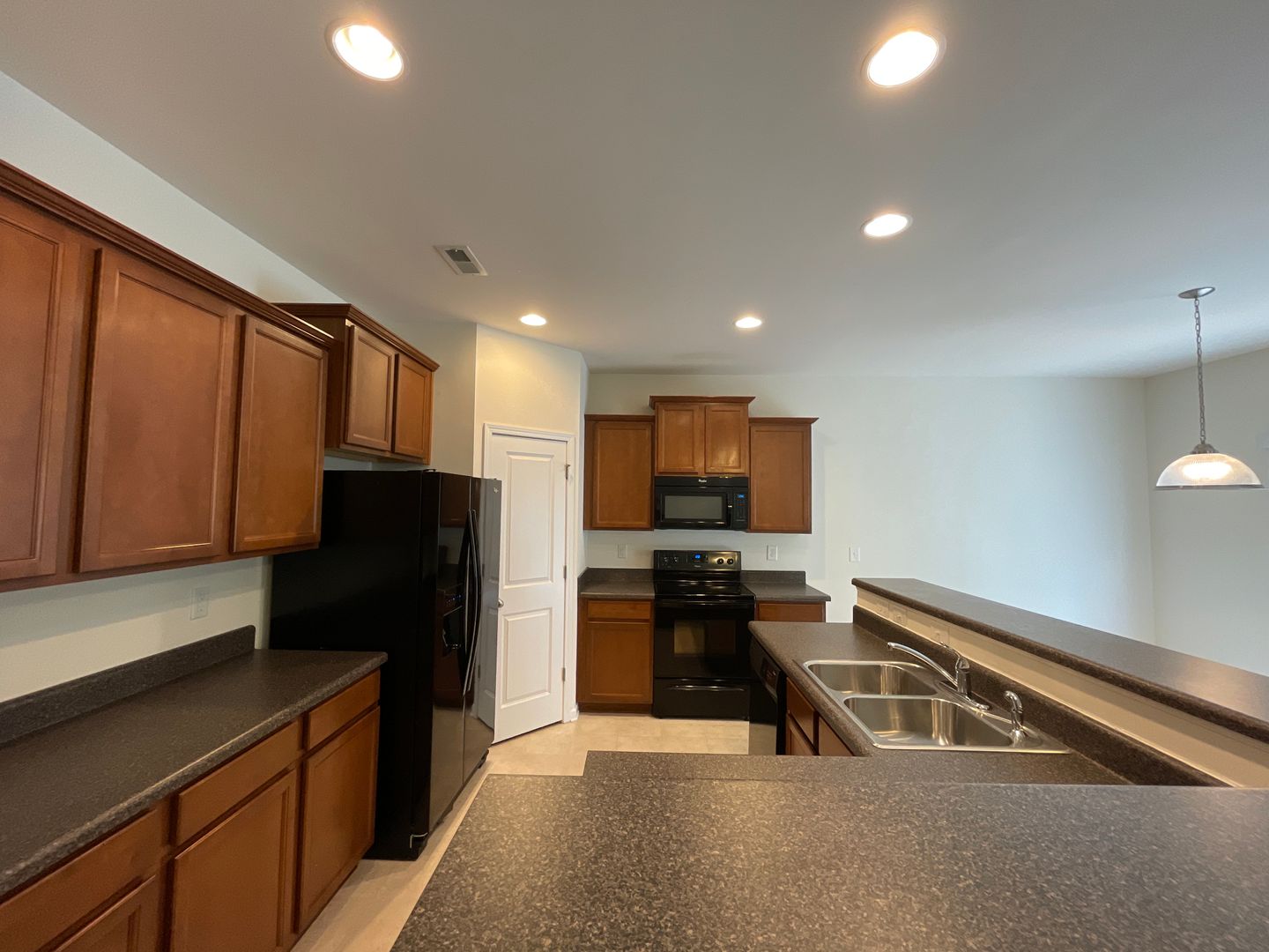 Open floor-plan on main level with huge living room, spacious kitchen and breakfast area. Nice dark cherry finish cabinets and all black appliances in kitchen. Walk-in pantry. Tons of cabinet & counter space in kitchen! Upstairs offers a large loft area; double doors to master suite with trey ceiling. Private master bath with dual vanity, separate garden tub and stand up shower with walk-in closet. Two spacious secondary bedrooms and full bath upstairs. Two car attached garage.