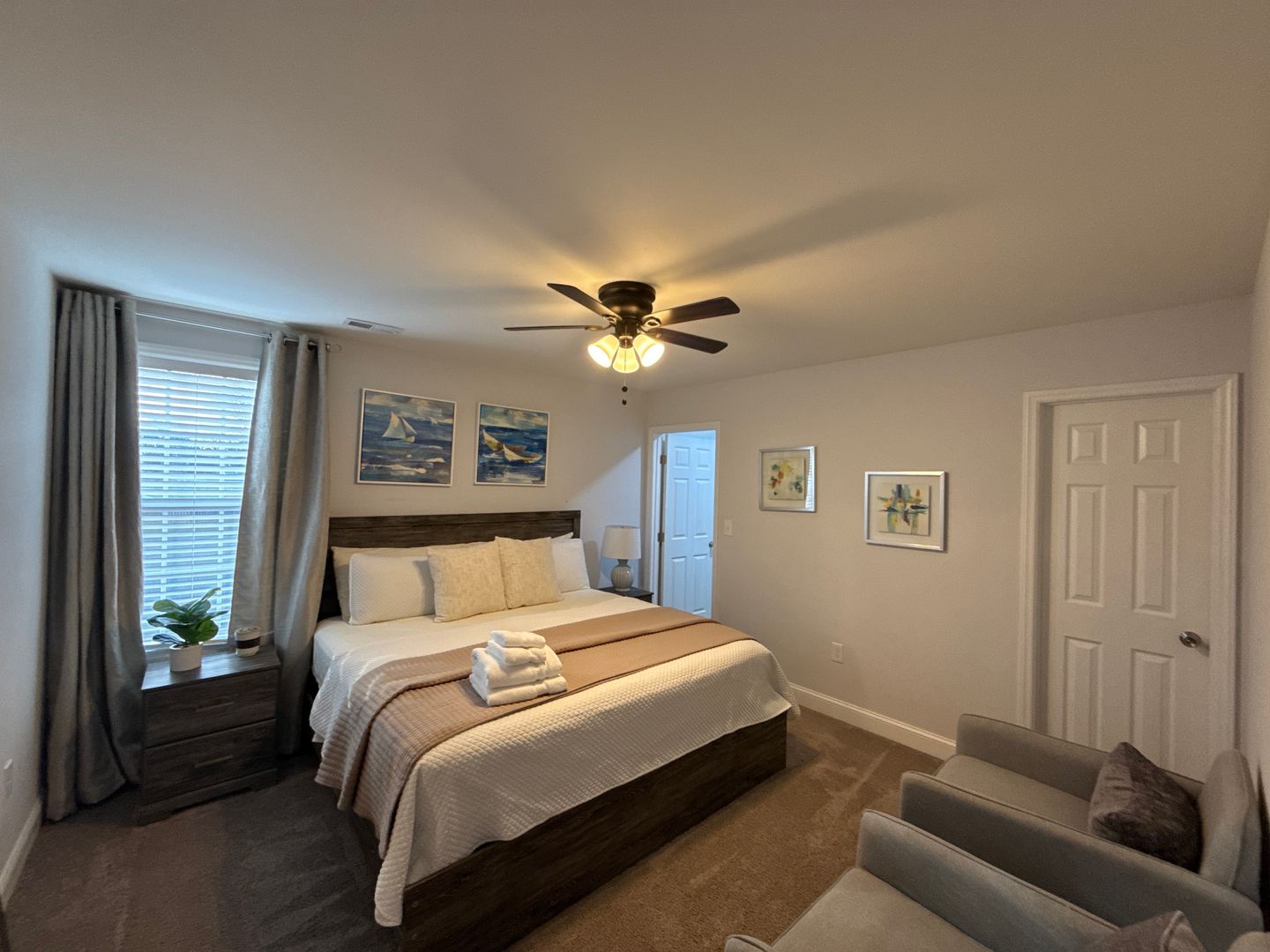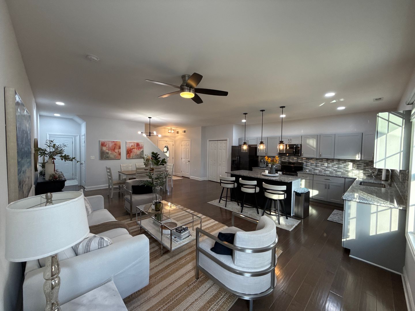 Now available and move-in ready! This beautifully furnished 4-bedroom, 3.5-bath home offers the perfect blend of comfort, style, and space. The main-level Primary Suite is a true retreat with a spa-like bathroom and two walk-in closets. Upstairs, you'll find a massive loft, ideal for a second living area, playroom, or home office. Enjoy the comfort of multizone heating and A/C throughout. The kitchen is designed to impress, featuring a large granite island, stainless steel appliances, and ample counter space, perfect for entertaining! The home is finished with durable luxury waterproof vinyl plank flooring, ceramic tile in the baths, and plush carpet in the upstairs bedrooms. Step outside to a huge fenced backyard, ideal for outdoor gatherings or relaxing evenings. Located in a prime area just minutes from major freeways, shopping, dining, and everyday conveniences. Don't miss this one—schedule your private tour today and fall in love with your next home!