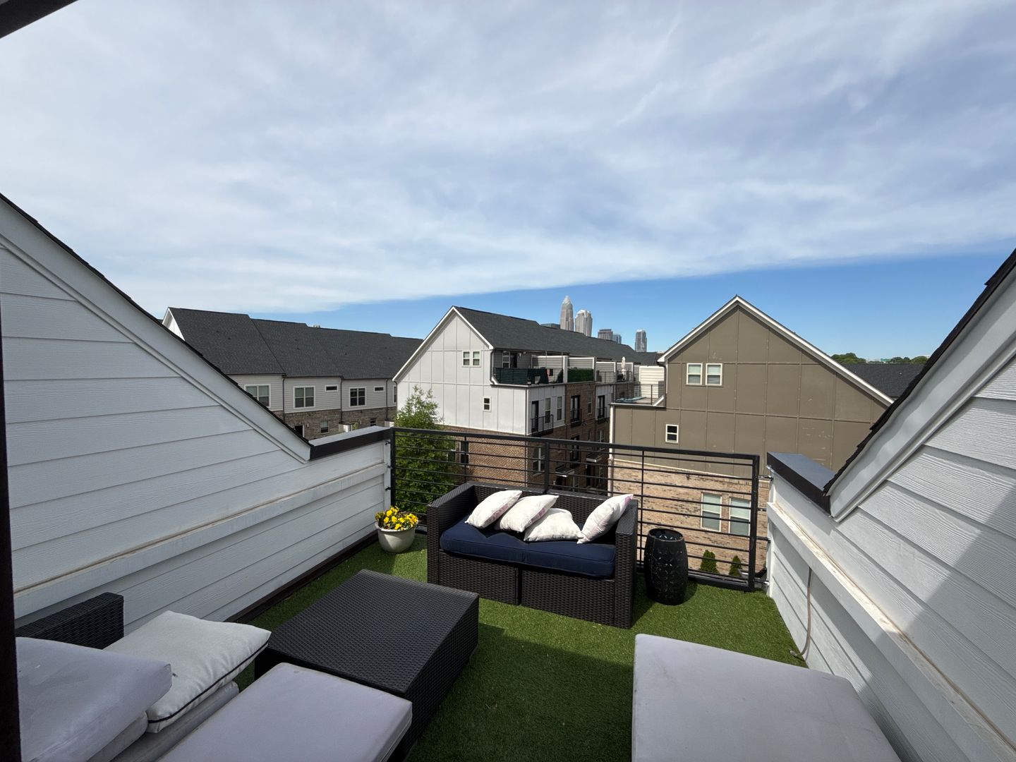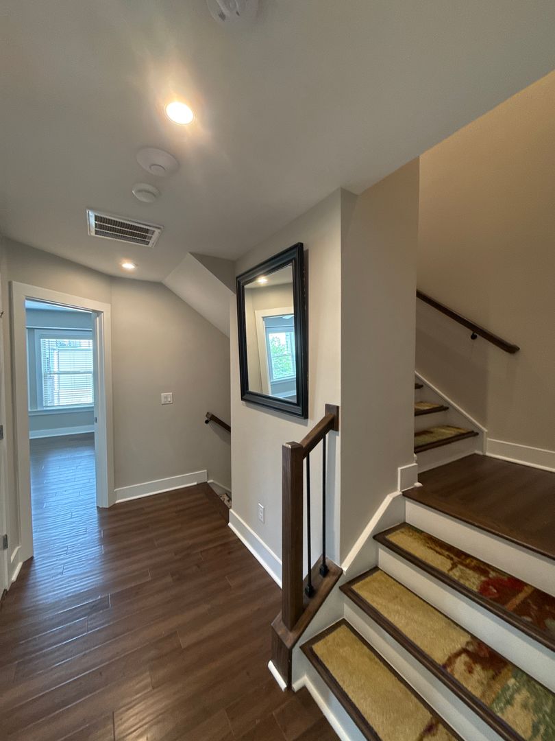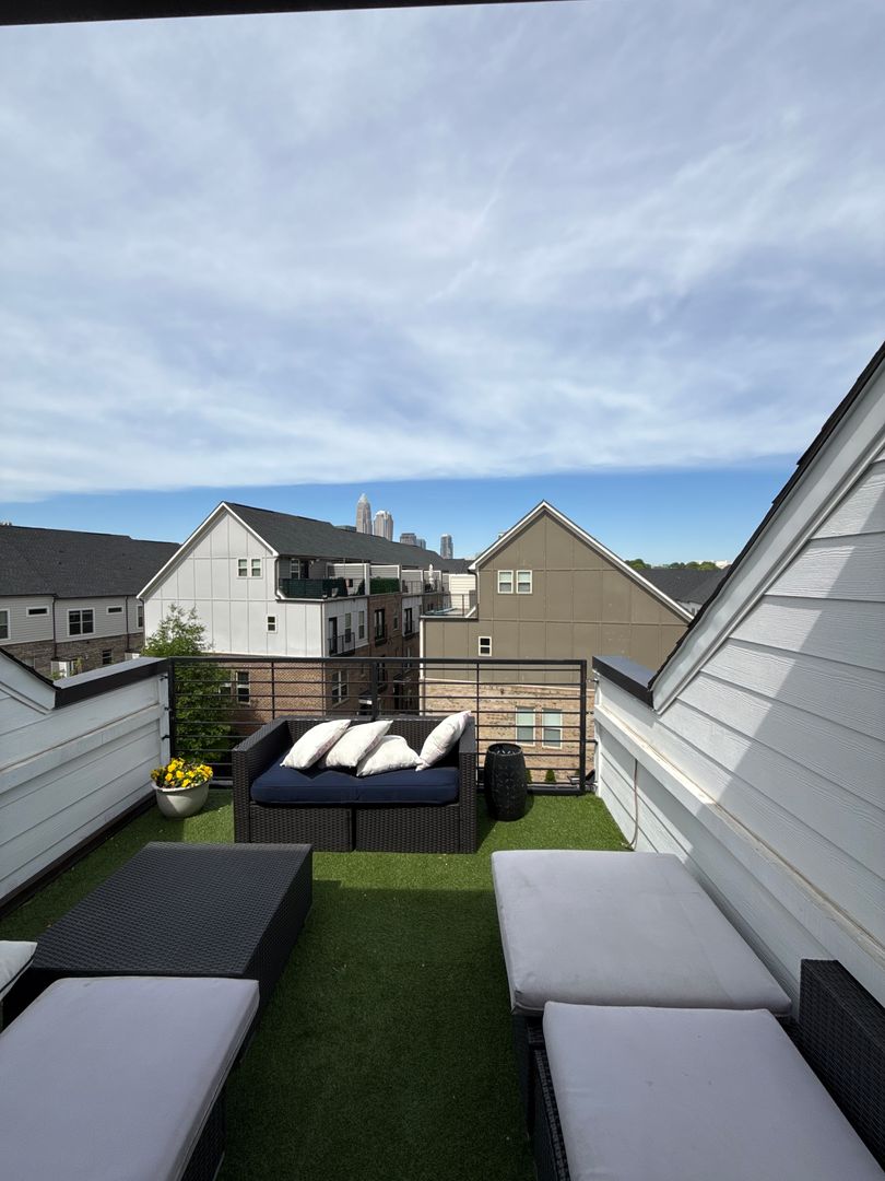 Welcome to this sleek and modern 3 bedroom, 4.5 bath townhome. The main level features seamless transitions with an open concept floor plan. The luxury kitchen has stainless steel appliances, plenty of countertop space and cabinets for storage. Entertain with the large space in the living room and hang out on the balcony located off this level. The upper level hosts the primary suite as well as a secondary suite- perfect for guests or flex space. The lower level leads to the theater room, professionally finished with sleek black walls to create a true cinematic experience. The space features a premium $1,000 impact screen designed for a golf simulator that seamlessly doubles as a high-quality movie screen—perfect for both entertainment and recreation. Enjoy the Charlotte skyline views from the spectacular rooftop terrace! Parking is secure and convenient with the 2 car garage. Surrounded by NODA, Uptown, Plaza Midwood, Belmont and Elizabeth neighborhoods. Furnishings pictured will not be in the home. Amenities Included in Home: -85'' Samsung Frame TV in living room -In ceiling stereo throughout the house and home theater system on main floor with TV, ceiling speakers, Subwoofer, and sound bar. -ADT Prewired -Complete Patio Furniture Set off Rooftop Terrace and Patio deck off Kitchen- Custom-built, Sound-Proofed Home Theater -Attached 2 Car Garage with storage and refrigerator.